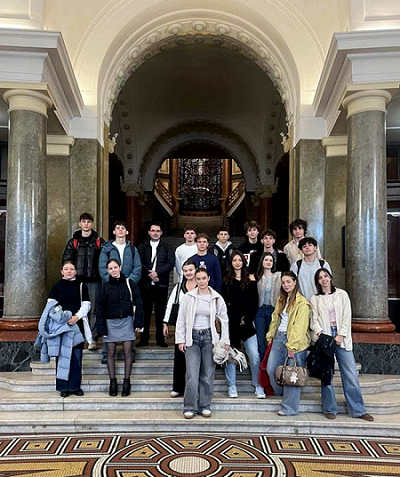 12. Г клас посетиха Софийския университет „Св. Климент Охридски“ и се запознаха с историята на най-старото висше училище у нас, с интересните експозиции на Музея по палеонтология и исторична геология (очаквано, особено внимание сред учениците привлече внушителният реставриран скелет на род Дейнотериум) и на Музея по минералогия, петрология и полезни изкопаеми. Ключов момент в дòсега до културното наследство на миналото бе участието в беседата за живота и научното дело на проф. Асен Златаров в рамките на изложбата, организирана от Университетската библиотека „Св. Климент Охридски“ по повод 140 години от рождението на изтъкнатия учен и преподавател. Нейният наслов – „Човек е роден, за да служи на живота в името на човека“ – стана своеобразен повод за размисъл и за търсене на нови възможности за напредък в знанието в духа на съпреживяността.