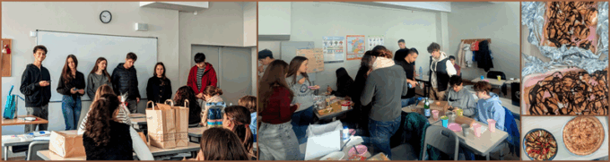 Учениците от 9. Ж клас приготвиха редица френски кулинарни специалитети – рататуй, киш Лорен, лимонена торта, ябълков пай, еклери и домашни макарони. Всяка кулинарна наслада беше представена със своята история.