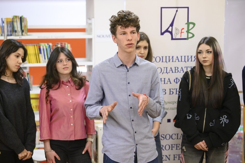 В подкрепа на двата наши отбора бяха учениците от 11. Б клас, придружавани от г–жа Людмила Гълъбова. Куизът се състоя от три кръга: първият, включващ 20 въпроса върху франкофонията и франкофонските страни; вторият, в който отборите трябваше да отговорят устно с подготвено изказване на въпроса: „Защо да учим френски език през 2026 г.?“. И двата отбора на Френската гимназия се справиха страхотно в този кръг, като комбинираха точна информация и оригинален начин на представяне, което даде шанс на втория екип да достигне финалния трети етап от състезанието. В крайното класиране след оспорвана надпревара между отборите финалисти екип 2 на Френската гимназия спечели второ място.