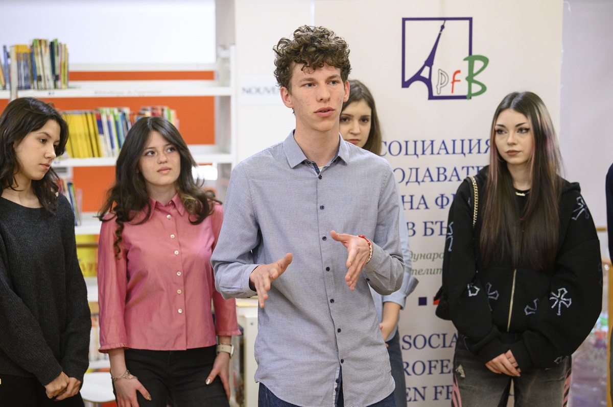 Нашата гимназия беше представена от два отбора. В екип 1 участниците бяха Крис Ценков от 11. Е клас, Владимир Владов и Александър Василев от 11. Б клас. Екип 2 беше съставен от ученици от 11. Ж клас – Денис Иванов, Едит Дикова и Ема Андонова. Те тестваха своите знания за франкофонията в съревнование с отборите на 18. СУ „Уилям Гладстон“, 164. ГПИЕ „Мигел де Сервантес“ и 133. СУ „Александър Пушкин“.
