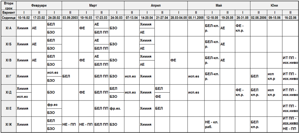 • Седмично разписание XII кл.