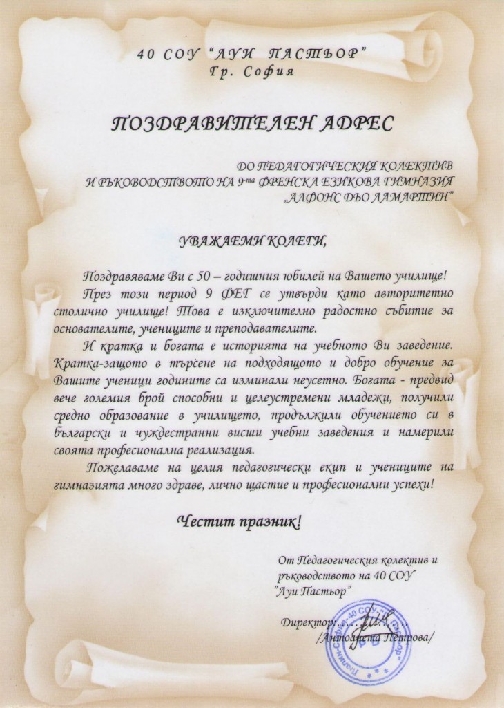 9. Френска езикова гимназия "Алфонс дьо Ламартин".