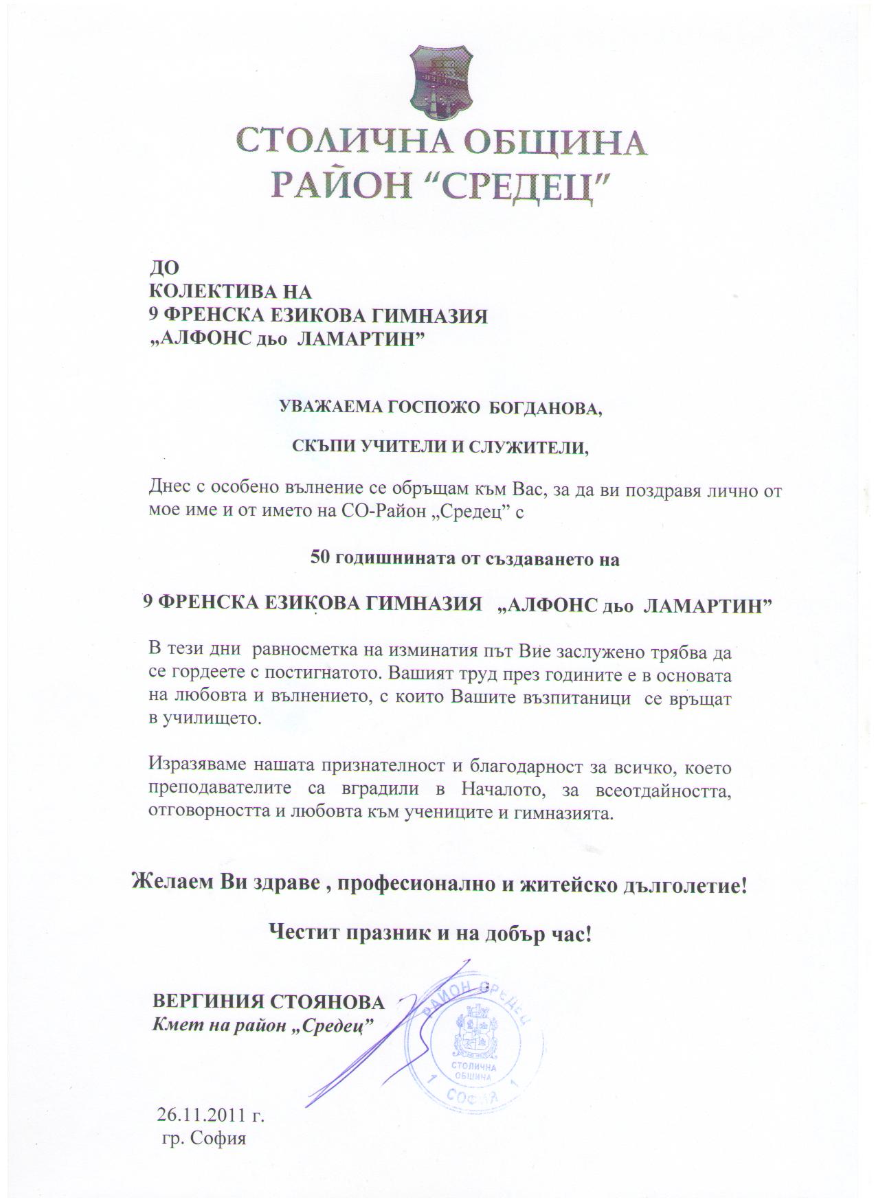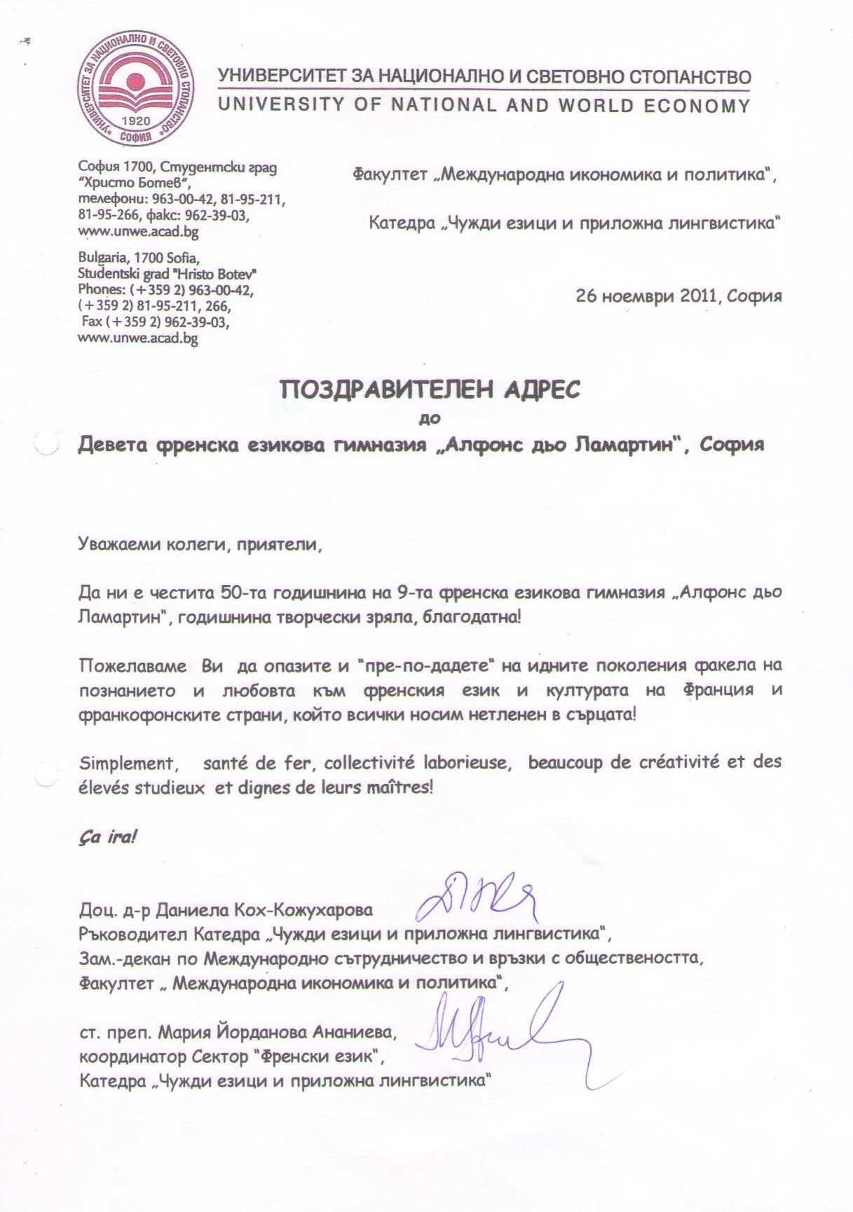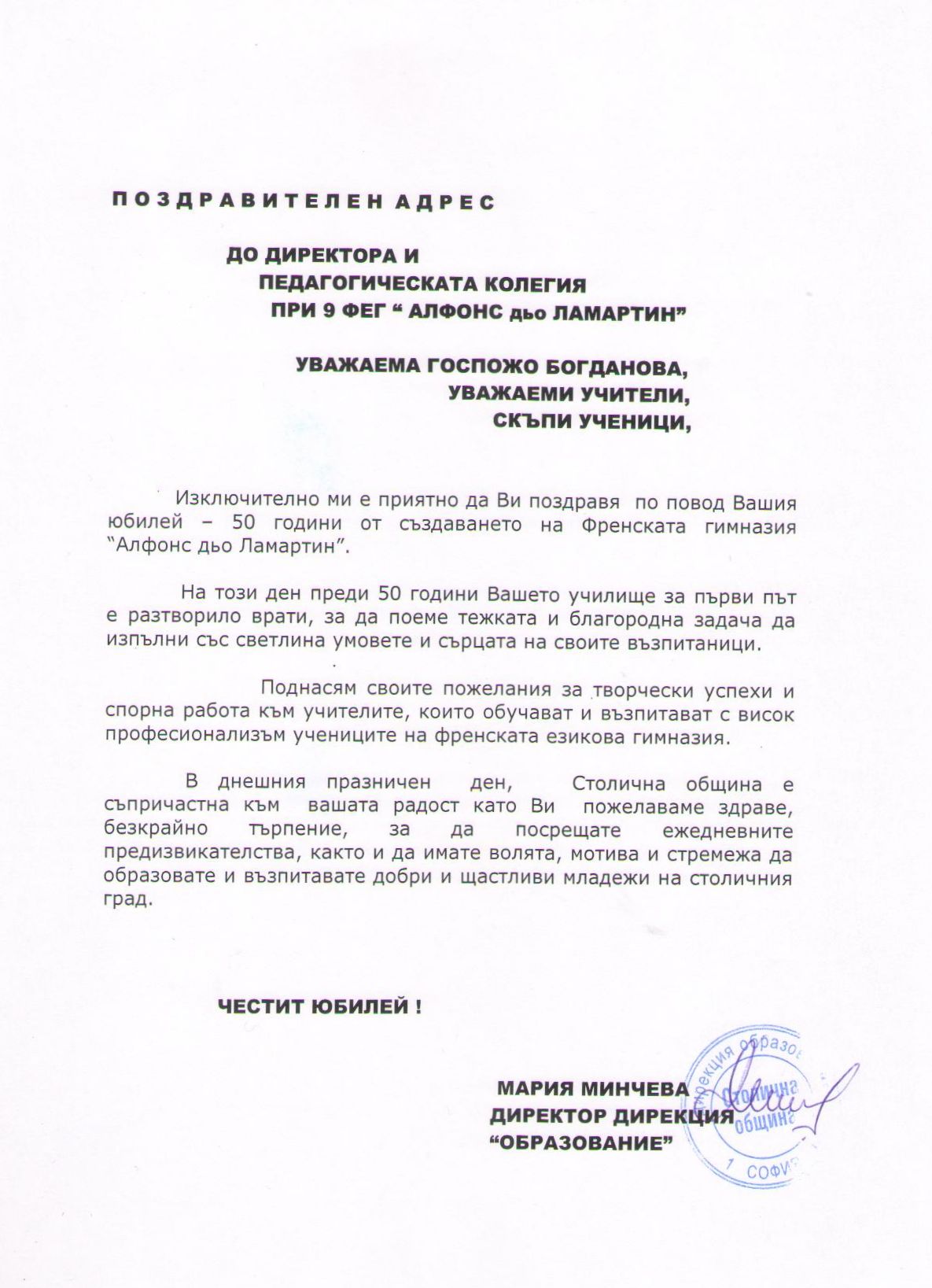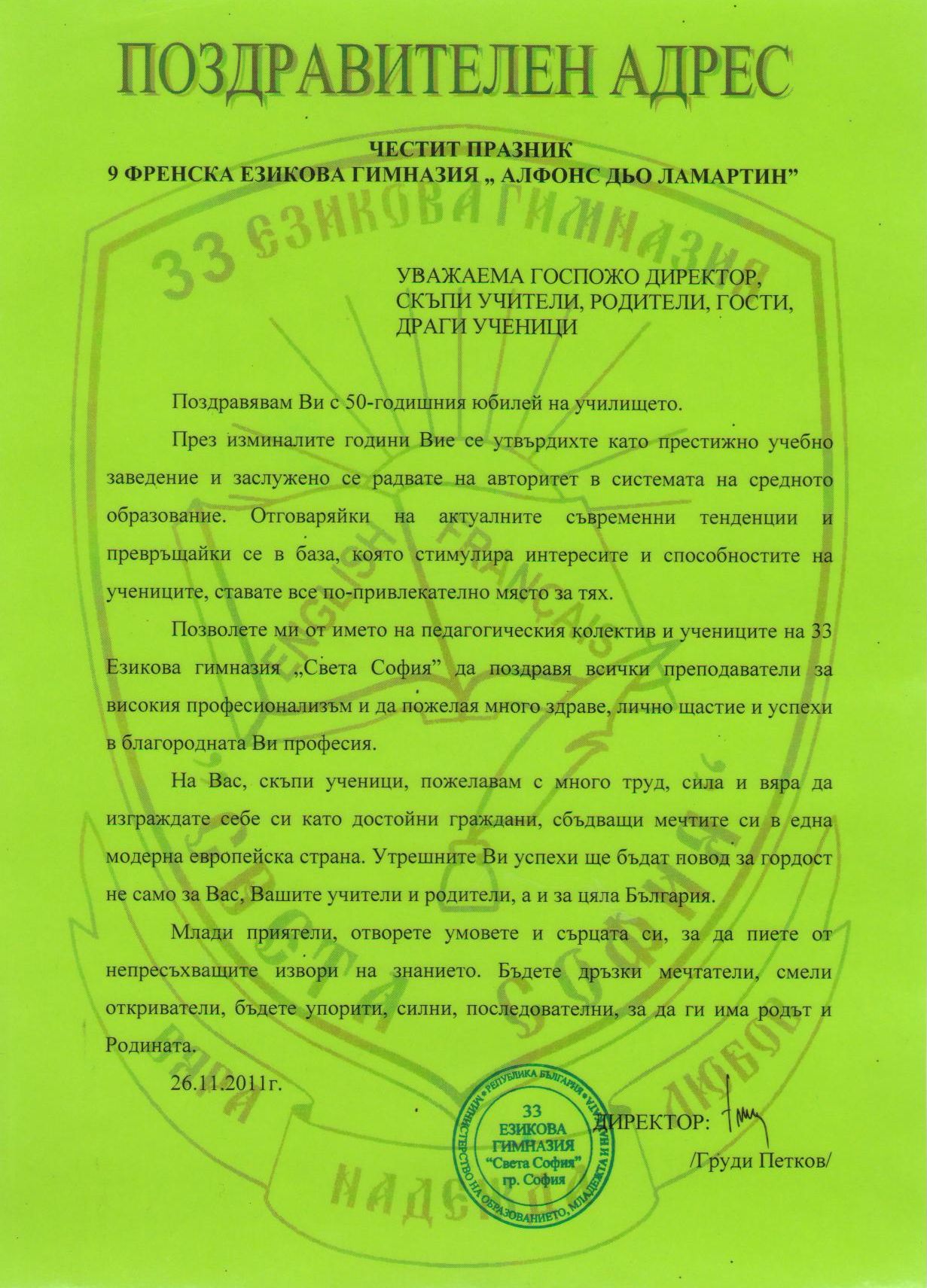 ПОЗДРАВИТЕЛНИ АДРЕСИ ПОСЛУЧАЙ ЮБИЛЕЯ НА 9 ФЕГ