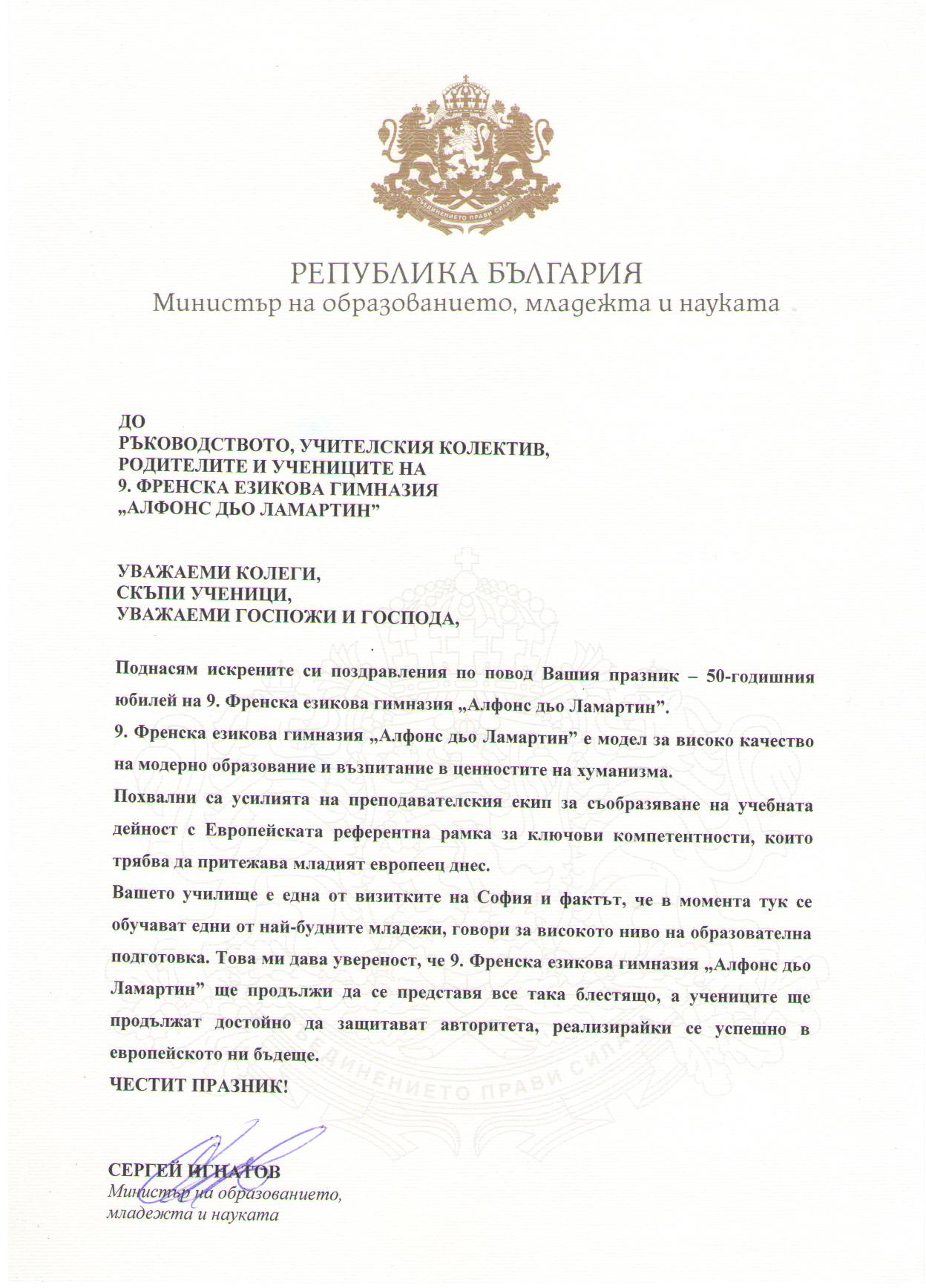 - Сергей Игнатов – Министър на образованието, младежта и науката