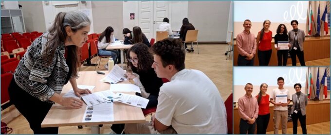 На 9 октомври 2025 г. Вяра Груйчева и Димитър Иринков от 9. Д клас участваха в обучително ателие на тема „Действай на френски“ – стани водещ на образователен уъркшоп в твоята гимназия, организирано от Френския институт в България. Целта на тази инициатива е да накара младите хора да се замислят над социални и екологични проблеми, които ги засягат пряко, да се запознаят с конкретни примери за граждански инициативи, провеждани в света, и да адаптират решения в собствения си социален и учебен контекст. Макар и да бяха най-младите участници, те се справиха блестящо и вече проведоха първото си ателие в час по френски език.