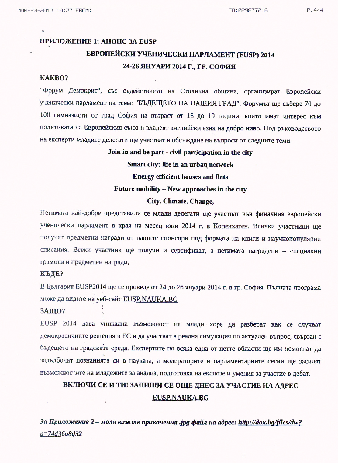 Заявление за участие във втори етап на класиране за прием в VIII клас