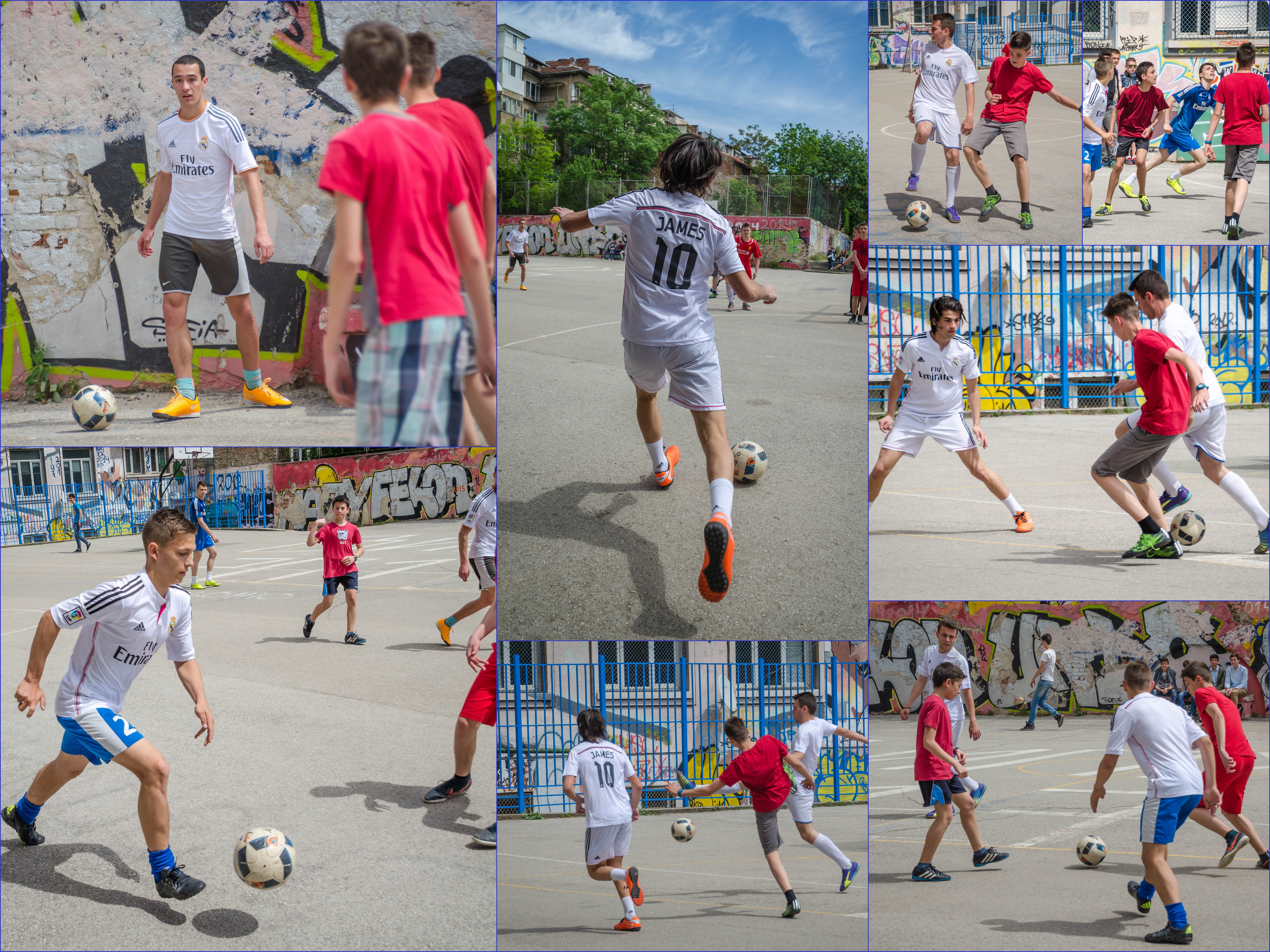 Споделяме снимки от тазгодишния футболен турнир, организиран от Ученическия съвет на 9. ФЕГ. Това бе наша инициатива, която осъществихме с цел да допринесем за усъвършенстване на цялостната атмосфера в училището. Идеята бе да се получи доближаване между малки и големи в гимназията. Чрез спортни изяви ние постигаме единство между нас учениците и за пореден път показахме, че заедно можем повече. Фотографиите са на Марта Москова от 10а клас.