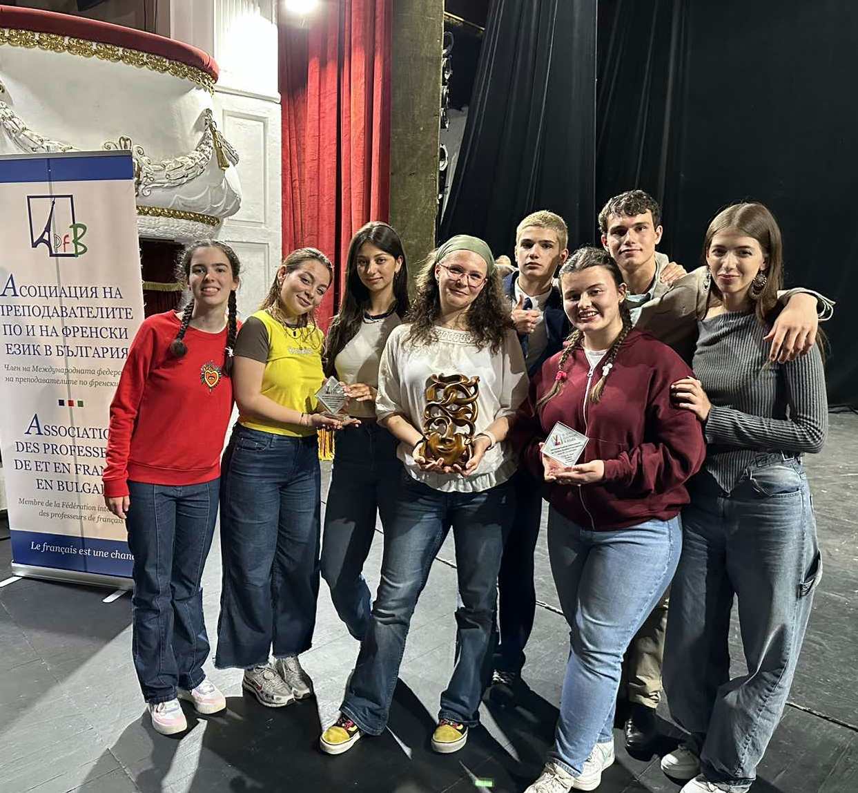 9 ФЕГ "Алфонс дьо Ламартин" » Театралната трупа на 9. ФЕГ спечели Специалната награда на вицепрезидента на Република България г-жа Илияна Йотова на XXVII Театрален ученически франкофонски фестивал – 19-20 април 2024 г.