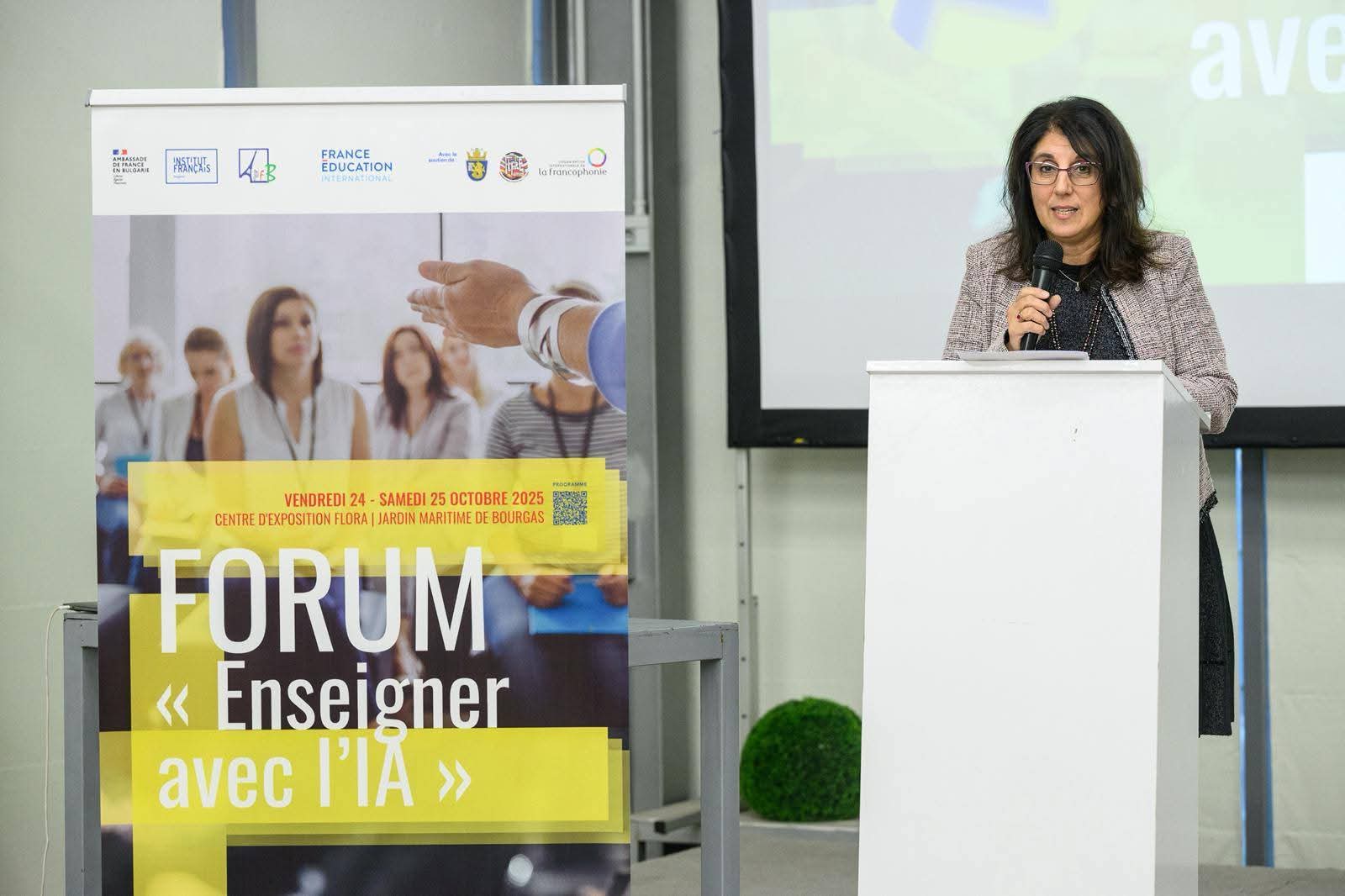 Годишната среща на учителите по и на френски език в България, организирана съвместно от АПФБ и Френския институт в България с подкрепата на КРЕФЕКО, се проведе в Бургас на 24 и 25 октомври 2025 г. Темата на тазгодишното издание на форума, което събра 90 участници от цялата страна, беше „Да преподаваме френски с помощта на изкуствения интелект“. Учителите по френски език от 9. ФЕГ Людмила Гълъбова, София Стоянова, Браяна Ракова, Николай Любенов, Магали Желева, Надежда Тончева и Дарина Енчева се включиха активно както в организацията, така и в трите обучителни ателиета. Събитието бе официално открито от г-жа Вяра Любенова – учител по френски език в гимназията и председател на АПФБ. Тя направи вълнуващо изказване, насочващо към присъствието на френския език в Бургас, актуалността на темата и необходимостта от постоянно продължаващо обучение и квалификация на преподавателите по чужд език.