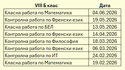 ·         График за класните и контролни работи за VIII Б клас