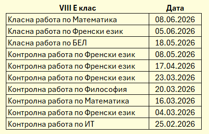 ·         График за класните и контролни работи за VIII Е клас