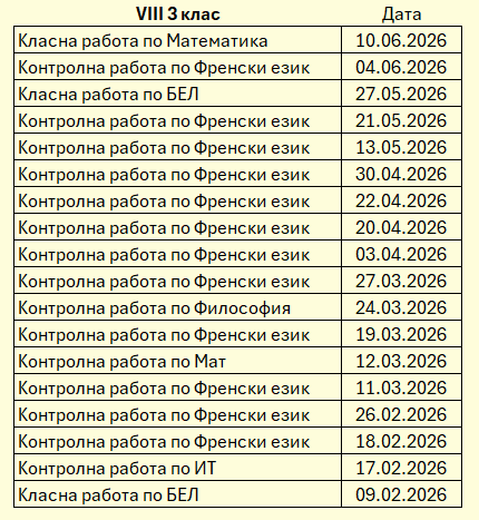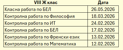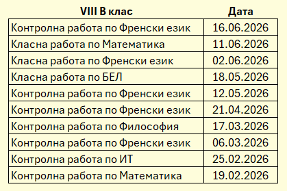 ·         График за класните и контролни работи за VIII В клас