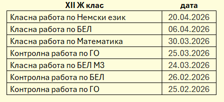 ·         График за класните и контролни работи за XII Ж клас