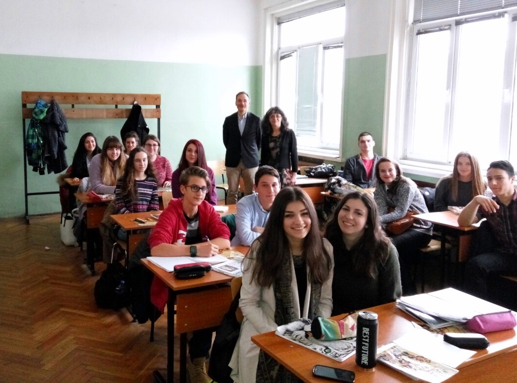 Mercredi le 06.01.2016 monsieur Xavier Godin – professeur d’histoire du droit à l’université de Nantes et monsieur Svetoslav Milanov – ancien élève de la promotion 2005, ont visité notre lycée. M Godin a donné un cours d’histoire aux élèves de 10D. Madame G.Krastèva – directrice adjointe du lycée et madame E.Sadulova – professeur d’histoire ont également assisté à cet évènement.