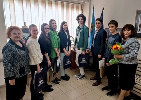 Бяха наградени: Александър Дойчинов от VIII А клас, Бояна Кирова от VIII Е клас, Мария–Стефани Прангов от IX А клас, Неяна Гию-Маринова от Х Е клас, Инес Божилова от Х Ж клас (в момента е във Франция по Програма Ронсар), Илияна Боюклийска от Х В клас, Димитър Топалов от ХI В клас (лауреат на олимпиадата) и Мартин Гърбачев от ХII Е клас (лауреат на олимпиадата).