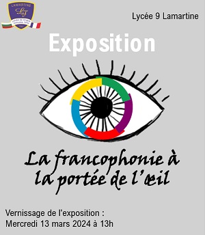 На 13 март в 9. ФЕГ „Алфонс дьо Ламартин“ франкофонската общност в България присъства на откриването на изложбата „Франкофонията на едно око разстояние“, организирана от Асоциацията на преподавателите по и на френски език в България – първото от множество събития, посветени на честването на месеца на франкофонията. Изложбата, включваща около 100 произведения, които са дело на повече от 70 артисти (предимно от 8-и клас), имаше за цел да отдаде почит към красотата и богатството на франкофонския свят, като представи картини за страни като Франция, Мароко, Белгия и Швейцария.