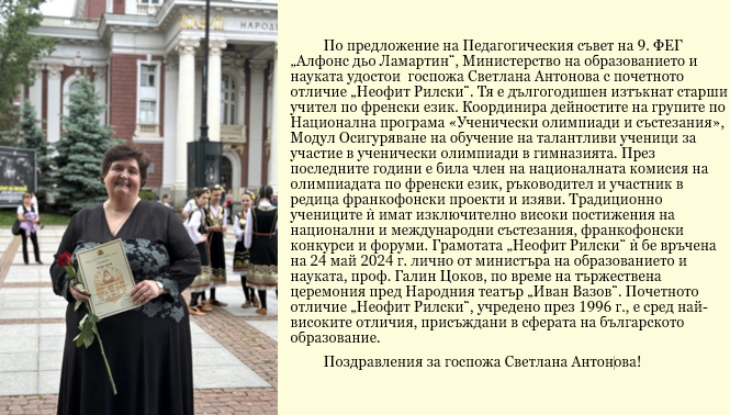9. Френска езикова гимназия "Алфонс дьо Ламартин".