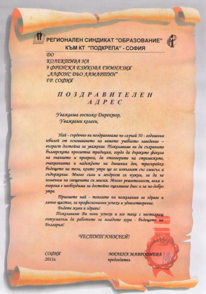 9. Френска езикова гимназия "Алфонс дьо Ламартин".