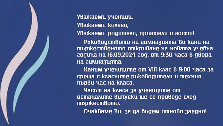 График на дейностите по приемане в 8. клас за 2025-2026