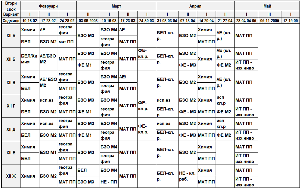§ График за класни работи и контролни § График за консултации по предмети § График за консултации с родители § График за провеждане на общинския кръг на олимпиадите по предмети § График на ваканциите