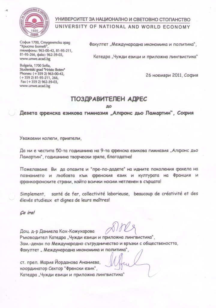 9. Френска езикова гимназия "Алфонс дьо Ламартин".